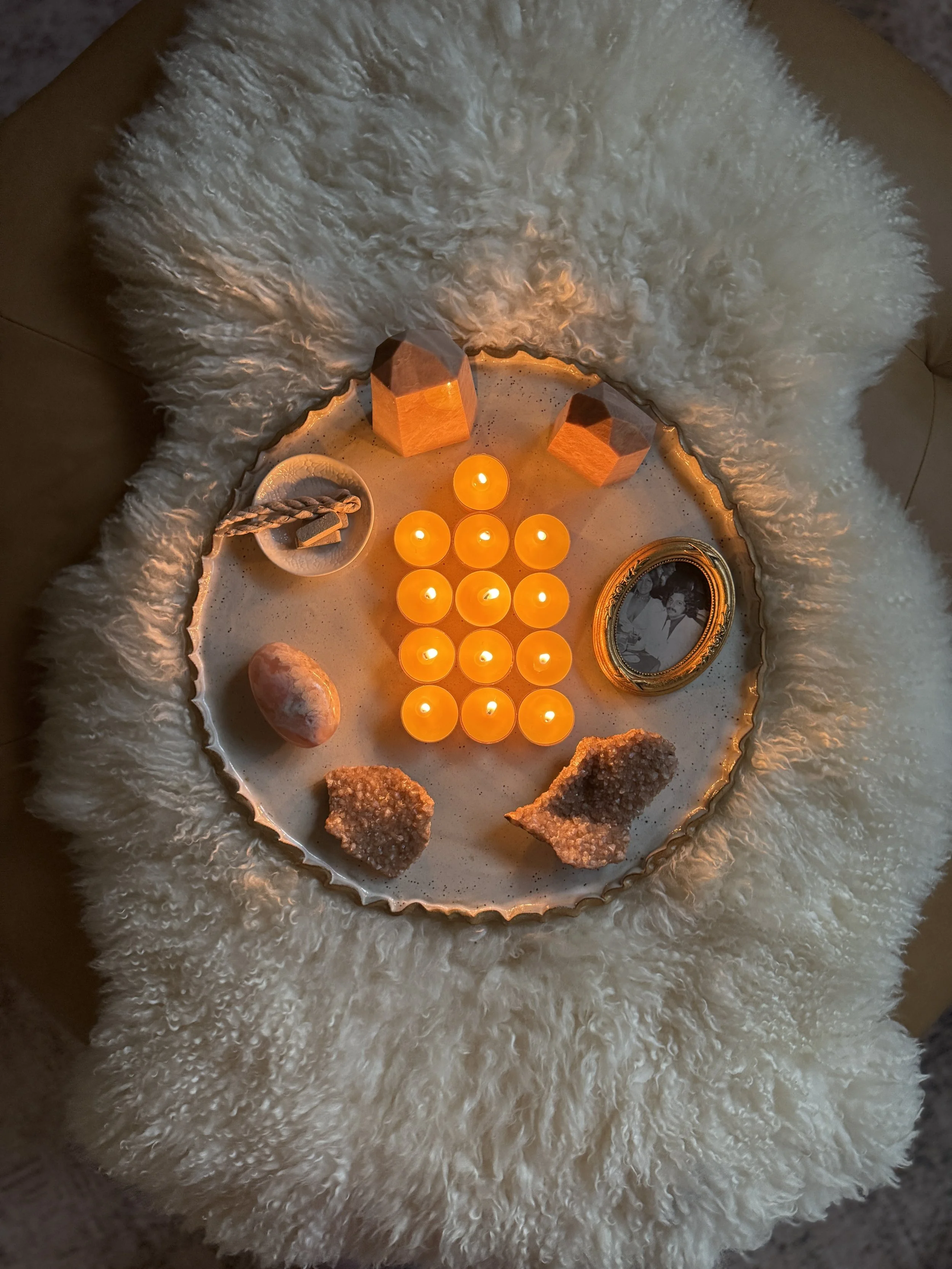 One day, you wake up and realize you’re no longer rushing to your phone first thing in the morning—you're lighting your candle, sitting at your altar, listening to your dreams or your sweet Soul. The voice that used to sound like anxiety now sounds like guidance and wisdom. Your body has become a compass to your truth. The relationships that were draining you have naturally completed. The work you came here to do isn't "out there" anymore—it's emerging through you, clearly, steadily. You're not searching for your purpose; you're living it. And when grief or uncertainty arrives, you know how to hold yourself, how to hear what your Soul is saying, how to trust what's unfolding. You've become the altar.
